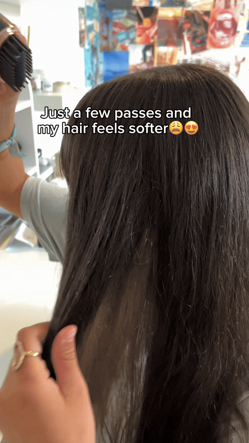 See the difference a few seconds can make. The Mini Comb Straightener smooths, shines, and tames flyaways for a sleek, salon-fresh finish anytime, anywhere.